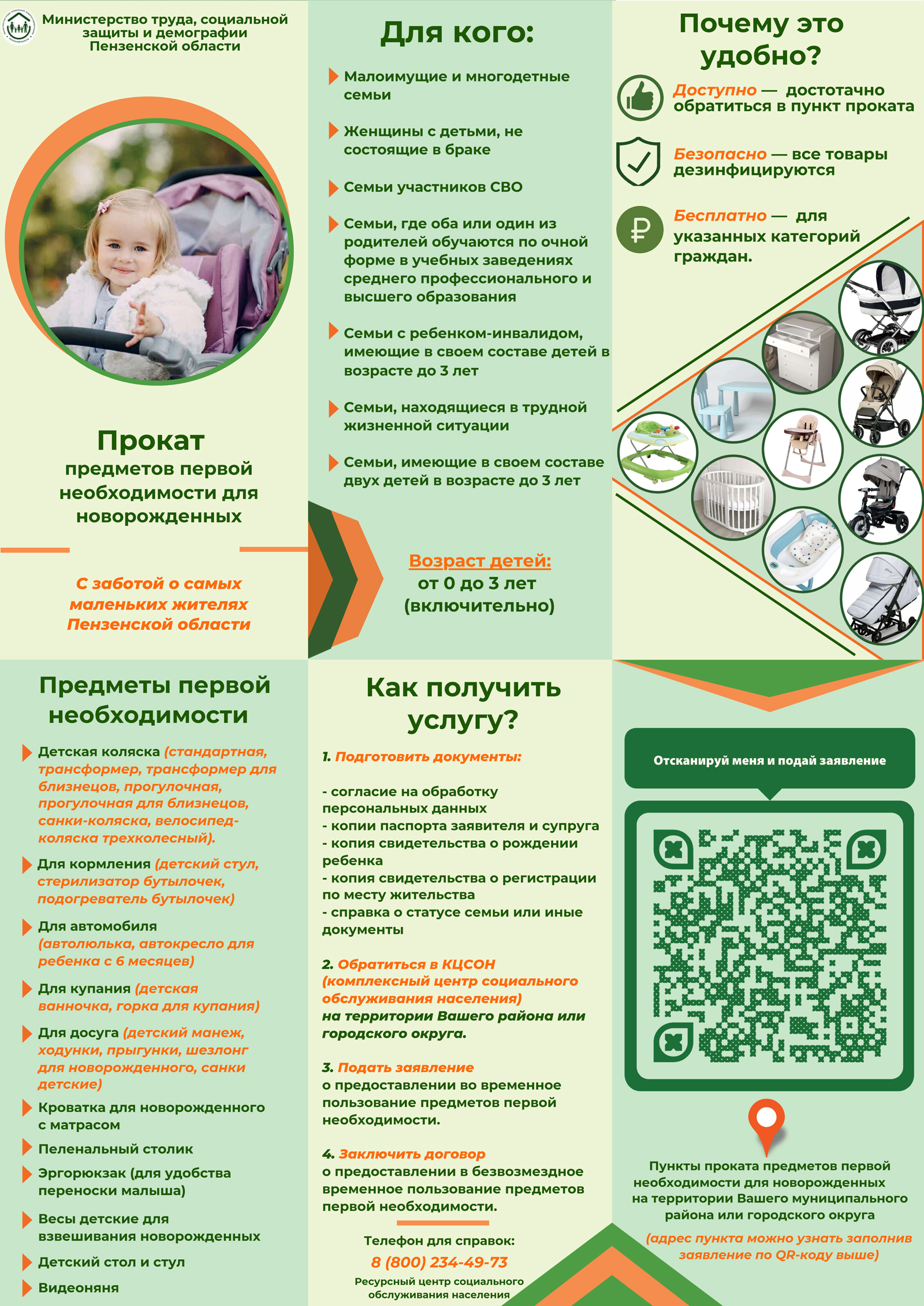 4. Получение предметов первой необходимости для новорожденных отдельных категорий нуждающихся семей с детьми, в том числе студенческих семей, в пунктах проката.