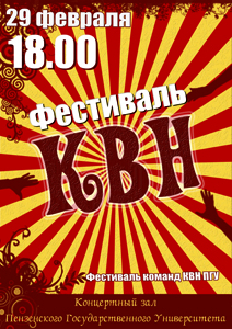 29 февраля в актовом зале ПГУ состоялся финал лиги КВН государственного университета, в конкурсной программе которого принимали участие 6 сборных команд, представляющих факультеты вуза. В качестве гостей на фестивале присутствовала сборная команда областной лиги «Бабы пауки». В состав жюри вошли ли 6 эксперто,в чье авторитетное мнение ни у кого не вызывало сомнений, под председательством "Мистера Вселенная" Алексея Нетесанова. Командам предстояло сразиться в четырех конкурсах: приветствии, разминке, биатлоне и видеоконкурсе. В результате подсчета баллов чемпионское звание досталось сборной факультета экономики и управления. В номинации "Лучший актер" победу одержал капинан команды ФЭУ Валентин Фролов. Лучшей видеоработай стал клип, созданный ребятами с ФВТ. Чемпион и все участники были традиционно награждены памятными и ценными подарками от постоянного спонсора фестивалей КВН ПГУ компанией МТС, карточки на экспресс оплату интернет-сети pnz были вручены также и в специальных номинациях. В следующий раз веселые и находчивые соберутся только в следующем учебном году.