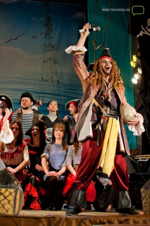Представление открылось замечательным вокально-танцевальным номером, и атмосфера в зале сразу преобразилась. Зрители попали на настоящий пиратский карабль, где бурлят свои страсти и закручиваются невероятные интриги. Необходимо отметить скрупулёзную работу декораторов, ведь оформление сцены было просто великолепным. ФВТ удивлял зрителей грамотной режиссерской постановкой, профессиональными номерами и чудесной актёрской игрой всего студенческого состава.