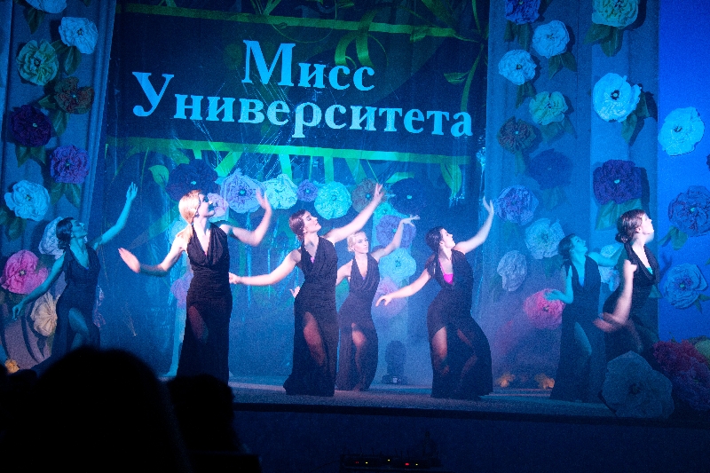 7 декабря в университете состоялось одни из самых долгожданных и популярных среди студентов мероприятий "Мисс университета". Концерту предшествовало полтора месяца упорной подготовки: постановка дефиле, подготовка визиток, пошив костюмов. В этом году перед режиссёрами стояла сложная задача - реализовать на сцене образ русских красавиц от времён ретро, за основу был взят фильм "Девчата", до наших дней. Участницы с поставленной задачей справились на славу. Концерт открылся тематическим дефиле, где были представлены конкурсантки, а их в этом году было 8, необходимо отметить замечательную атмосферу в зале, ведь каждую студентку поддерживал родной факультет и группа поддержки из близких и друзей. На конкурсе визиток участница демонстрировали свои таланты. Дефиле от спонсора мероприятия, магазина "Терранова" ознаменовало приближение интеллектуального конкурса, где девушки боролись за звание "Мисс интеллект". Стоит отметить, что в этом году организаторы конкурса усложнили задачу для конкурсанток и интеллектуальный конкурс состоял из нескольких заданий: рассказ в 40 секунд "Я и моя специальность", каверзный вопрос от ведущего и, нововведение конкурса, вопрос от членов жюри. Кульминацией конкурса послужило дефиле в вечерних платьях "Бриллианты", где девушки показали себя во всей красе.