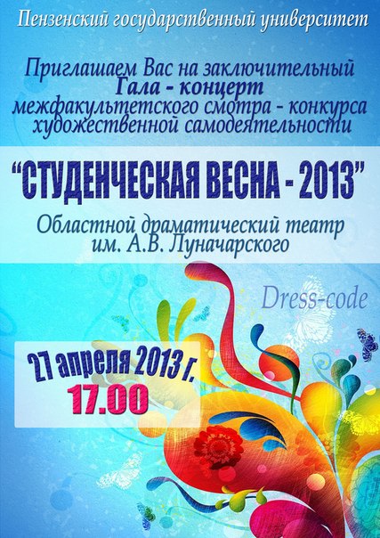 Заключительный гала-концерт межфакультетского смотра - конкурса художественной самодеятельности "Студенческая весна" пройдет в областном драматическом театре