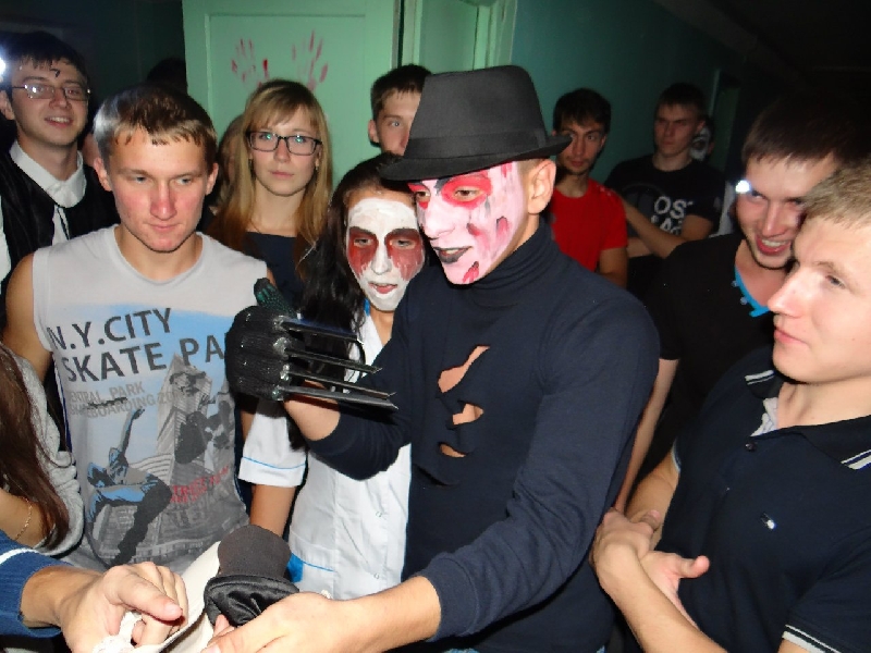 Команда первокурсников под руководством молодого бесстрашного волшебника бродила по темным коридорам общежития, где из-за углов то и дело вываливались зомби, или чья-то призрачная тень скользила вдоль стены. Мероприятие проходило в виде квеста, состоявшего из 8 станций, на каждой из которых первокурсники выполняли задания хозяина станций. Задания не всегда легкие и приятные, но настоящий житель общаги должен быть закален, выпив «адскую» смесь из всего, что можно было найти на общажной кухне.