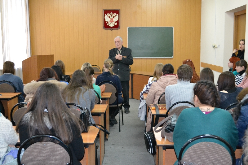 10 февраля на многих факультетах прошли встречи студентов с ветеранами Великой Отечественной войны и членами общественной организации «Российский союз ветеранов Афганистана». Председатель Пензенского морского собрания Сергей Алексеевич Цигвинцев встретился со студентами факультета физической культуры и спорта, его заместитель Борис Дмитриевич Прималовский – со студентами отделения бизнеса факультета экономики и управления.