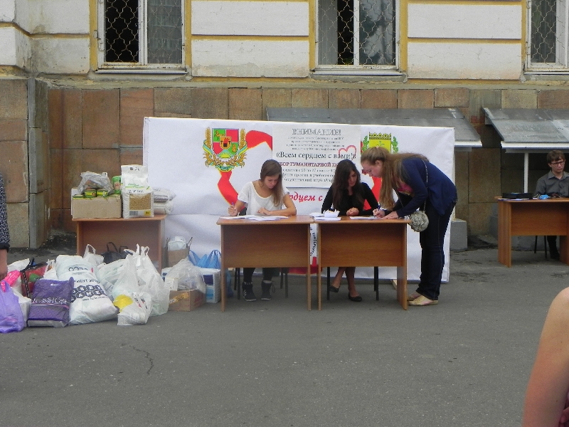 В течение недели работал пункт сбора гуманитарной помощи, куда все желающие студенты, преподаватели и сотрудники приносили вещи, медикаменты, продукты питания и деньги.