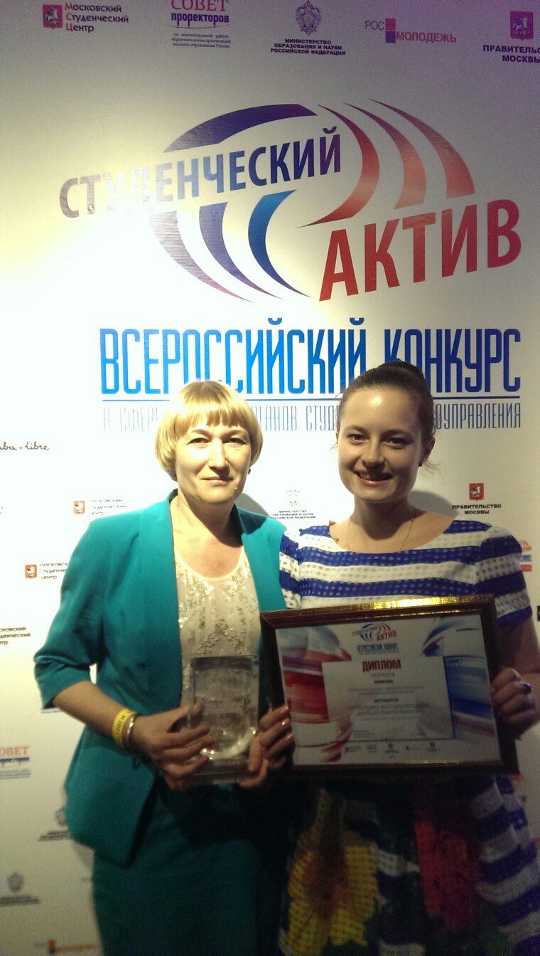 25 июня в г. Москва в концертном зале «Известия-холл» состоялось традиционное подведение итогов ежегодного Всероссийского конкурса в области развития студенческого самоуправления и воспитательной работы «Студенческий актив-2015», организуемый Советом проректоров по воспитательной и социальной работе организаций высшего профессионального образования России.