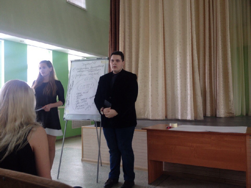 Сергей Анисимов поведал нам историю образования студенческого самоуправления, разъяснил концепцию его организации, структуру, а Екатерина Сягайло рассказала, как правильно организовать мероприятие – из каких этапов состоит подготовка, как рационально распределить обязанности и время.