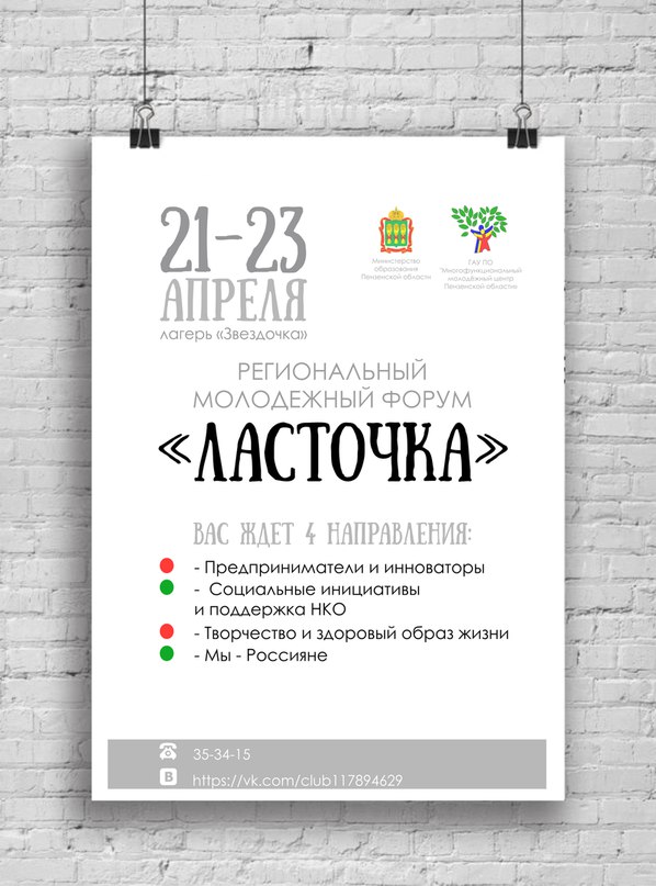 Напомним, с 21 по 23 апреля 2016 года на базе ДОЛ «Звездочка» состоится региональный молодежный образовательный форум «Ласточка». Участниками Форума станут молодые люди от 18 до 30 лет.