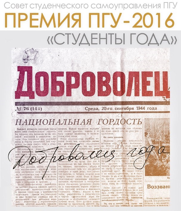 17 мая состоялся конкурсный день в рамках II Ежегодной молодёжной Премии ПГУ-2016 в номинации "Доброволец года". В данной номинации представлены: