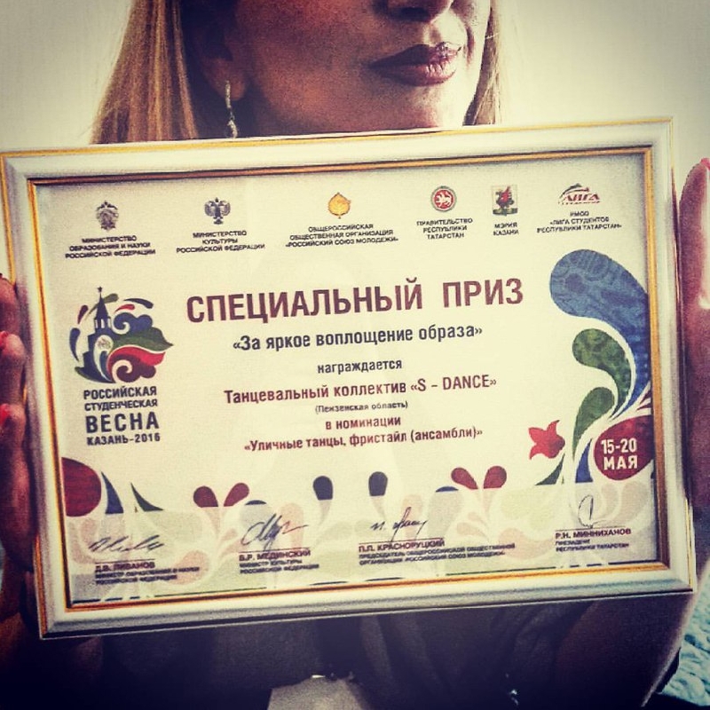 Танцевальный коллектив "S-DANCE. ПГУ" стали обладателями специального приза жюри фестиваля "Российская студенческая весна - 2016"!