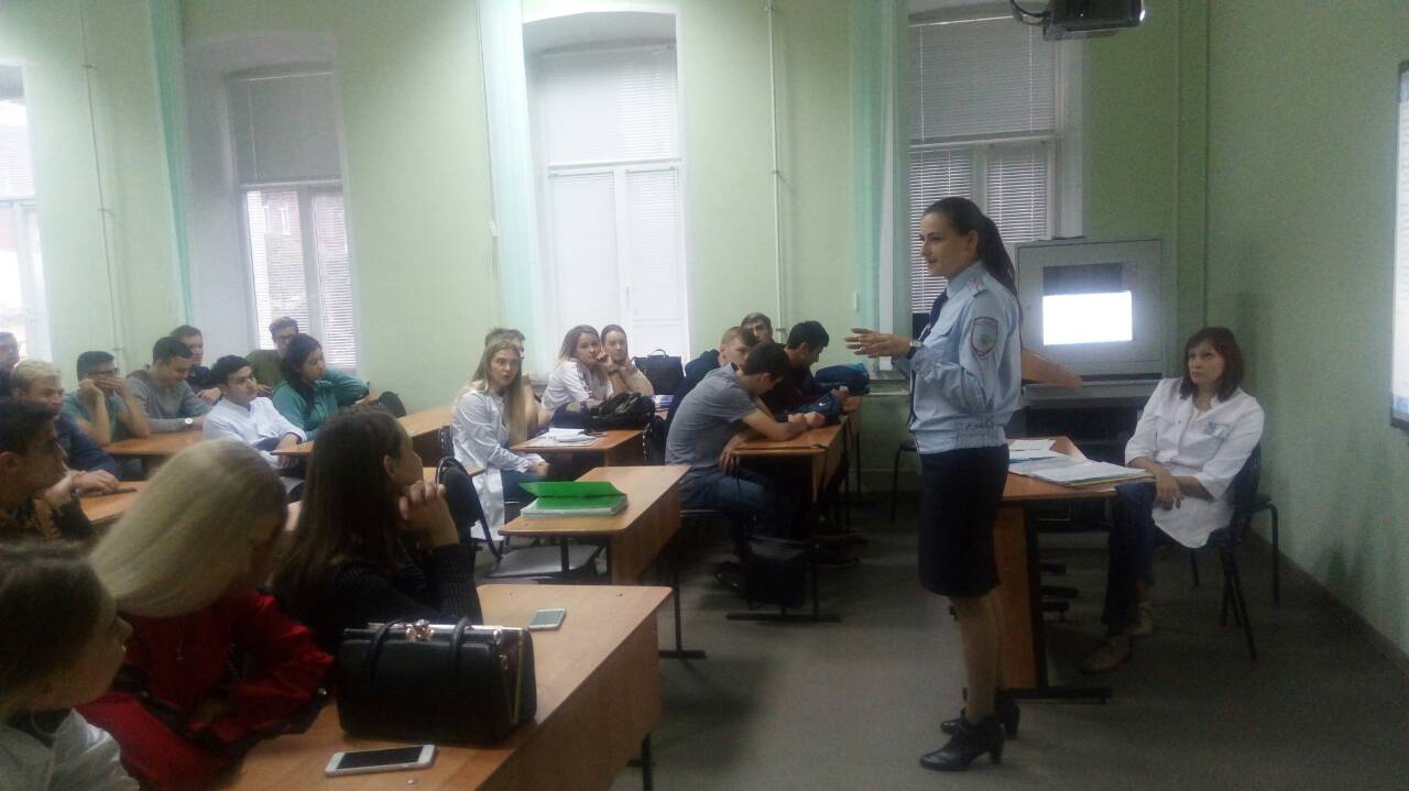 3 октября 2018 года в рамках кураторского часа состоялась встреча студентов 1 курса факультета стоматологии (гр. 18ЛС1) с сотрудником УМК УМВД России по Пензенской области Юлией Ивановной Ермолаевой. В ходе встречи были обсуждены вопросы профилактики употребления табака, алкоголя, наркотических средств и психотропных веществ в молодежной среде. Около 80 студентов, присутствующих на мероприятии, осознали важность этой проблемы и пришли к единодушному мнению, что будут прилагать все усилия для искоренения этого "зла" и вести здоровый обаз жизни.