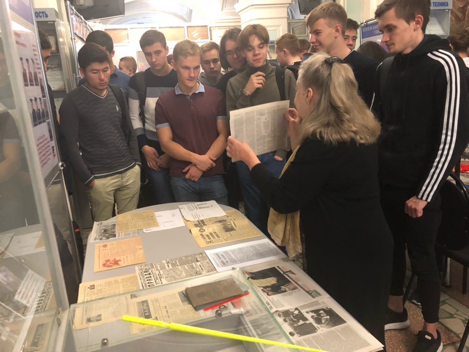 С 22 октября по 26 октября 2018 г. студенты 1-3 курсов ФВТ под руководством кураторов групп (18ВЭ1, 18ВО2, 18ВФ1, 18ВП1, 18ВП2, 18ВВ3, 18ВГ1, 16ВВ1, 16ВВ2, 16ВВ3) посетили выставку. Они получили полезную информацию о целой эпохе в жизни нашей страны: о ВЛКСМ, о комсомольцах. На выставке были представлены комсомольские значки, комсомольские билеты, фотографии молодежи 70–х – 80–х годов, газетные материалы, рассказывающие о деятельности комсомольцев в различные годы и многое другое.