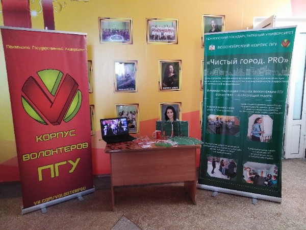 Волонтеры ПГУ не остались в стороне и стали ответственными за регистрацию и координацию участников. В 5 корпусе волонтёрами была организована выставка проекта "Чистый город. PRO", целью которого является вовлечение молодёжи в профилактическую деятельность, направленную на изолированность подростков от незаконной информации. Проект "Чистый город. PRO" реализуется в рамках Областного марафона инициатив среди студенческих волонтерских объединений антинаркотической направленности.