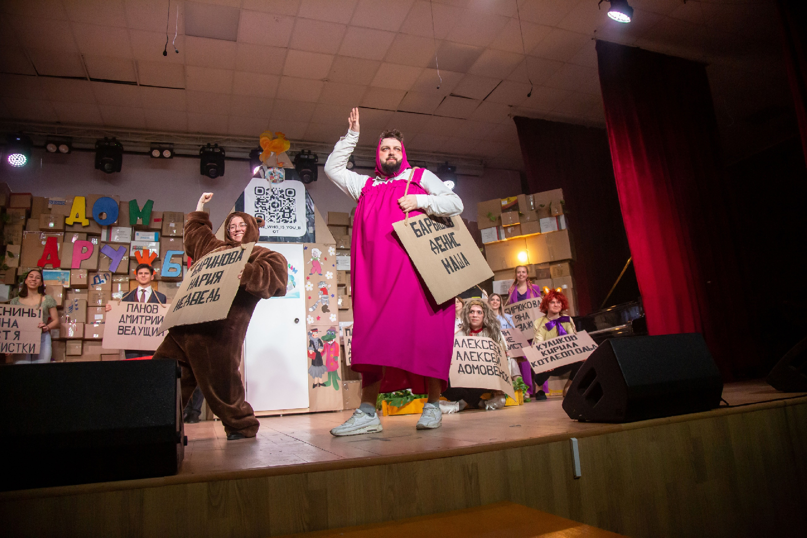 Лечебный факультет в рамках смотр-конкурса "Студенческая весна" построил настоящий «Дом дружбы». Классная и веселая история о том, как герои наших любимых мультфильмов детсва преодолевают все трудности ради хорошего дела! Всеми любимые Заяц и Волк, прекрасный Фунтик, кинозвезда Чебурашка покорили зрителей своей актерской игрой и харизмой.